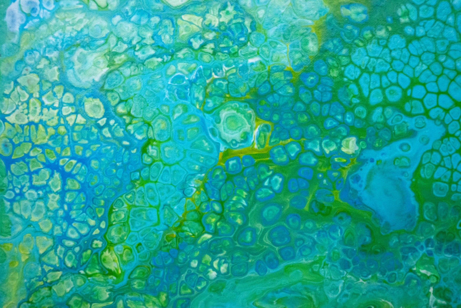Celebra l'energia dell'acqua con un'esplosione di tonalità blu, turchese e verde smeraldo che evocano mari cristallini e il movimento fluido delle onde.
