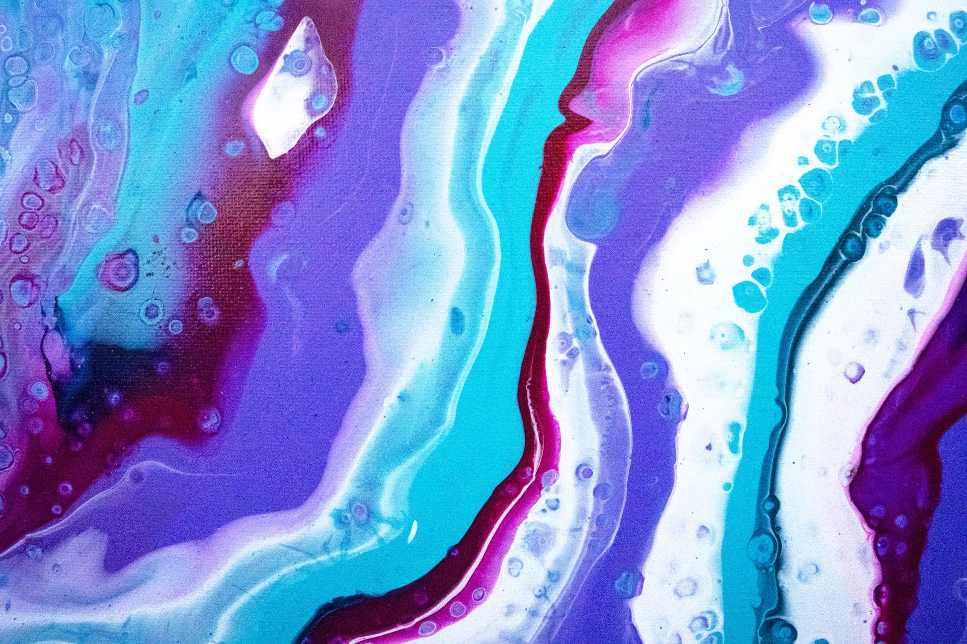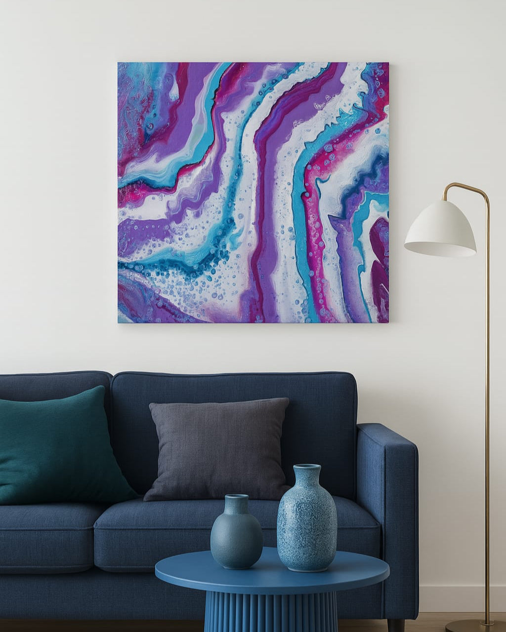 Un quadro astratto che unisce la morbidezza dei toni blu e lilla con la cremosità tipica della collezione SWEETY.